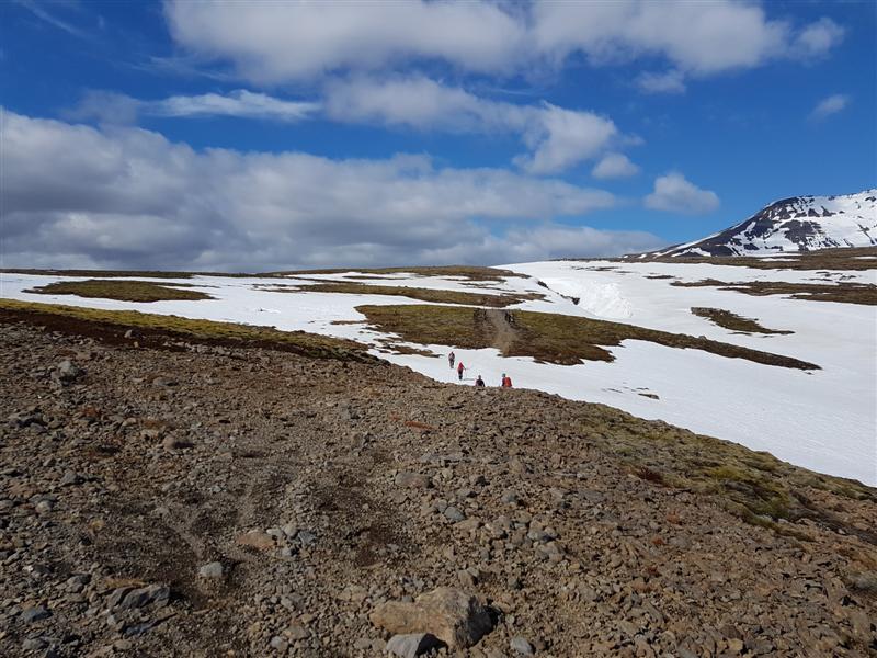 Heilmikill snjór ennþá á heiðinni... hann átti eftir að taka yfir allt þegar ofar dró...