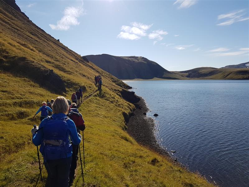 Við gengum meðfram vatninu í hlíðum Löðmundar og hafði kvenþjálfarinn hlakkað mikið til þessa leggjar... http://www.fjallgongur.is/tindur149_lodmundur_fjallabaki_041117.htm