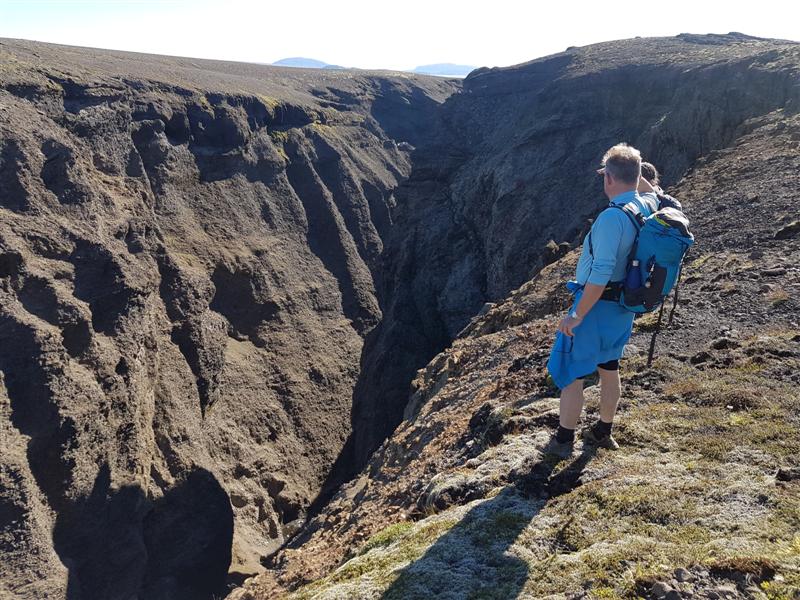 Menn fóru eitthvað að tala um að Erninum gekk illa að elta stíginn á Hellismannaleið um daginn (enda viljum við helst fara sem mest ótroðnar slóðir)... og Þorleifur rifjaði upp að á einhverjum tímapunkti fórum við framhjá gili einu þar sem ekki var farið eftir Hellismannaleiðarstígnum...