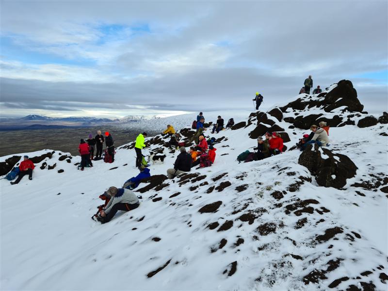 Hópurinn þéttur hér við hrygginn ofan við geilina...