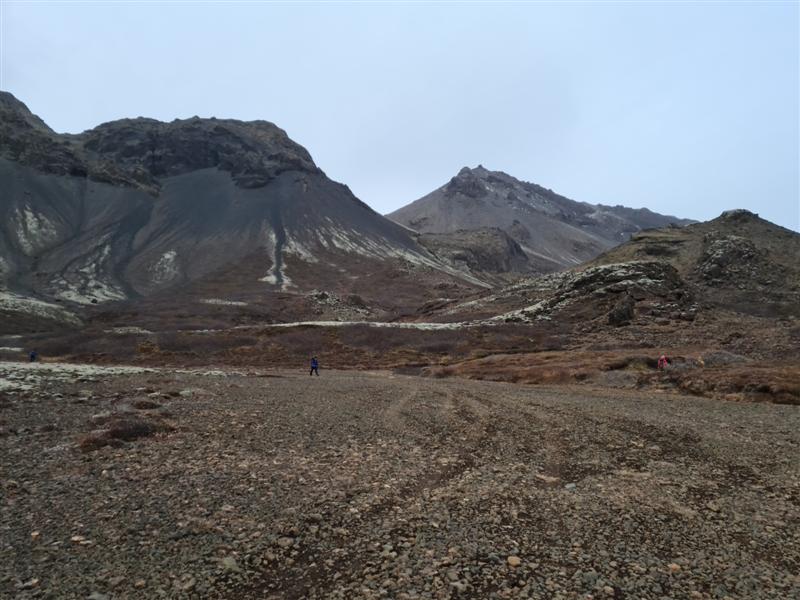 Milli Kálfstinda er bugðótt landslag þar sem ekki verður hjá því komist að fara litlar brekkur upp og niður...