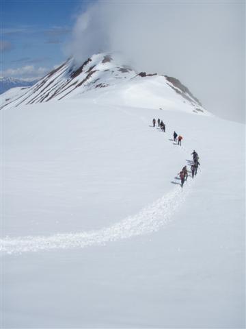 Fremstu menn ólmuðust við að spora út slóðina þarna upp sem var auðveld fyrir þá sem á eftir komu en hörkupúl fyrir fyrstu menn. Örn tók svo við gamalkunnu hlutverki ruðningsmannsins og skóflaðist þarna upp á endanum alla leið...