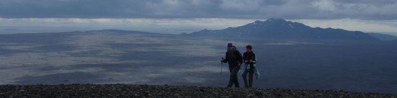 Skjaldbreiður í öllum sínum síðkjólsfellingum í baksýn hér á leið niður skriðurnar... ...eins og brúðarmey innan um töffaralega stapana á svæðinu Er Skjaldbreiður karlkyns eða kvenkyns...?