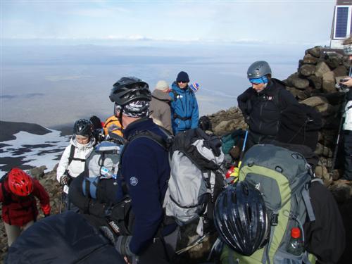 kynnum... Kristbjörg, Lilja og Ásta að leggja af stað frá brúninni að tindinum.