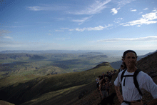 Þetta er andartak sem gefst þegar gengið er einsamall á fjöllum og smá innsýn fæst í það með kyrrðarstund sem þessari í stórum hópi og skal því eindregið mælt með því svo lengi sem öryggi er tryggt. Það var ekki fyrr en GSM-símar höfðu truflað þessa stund tvisvar að hópurinn gaf friðinn eftir og drattaðist á fætur til þess að koma sér niður, en spyrja má hvenær við hefðum staðið upp ef símarnir hefðu ekki rofið þögnina...