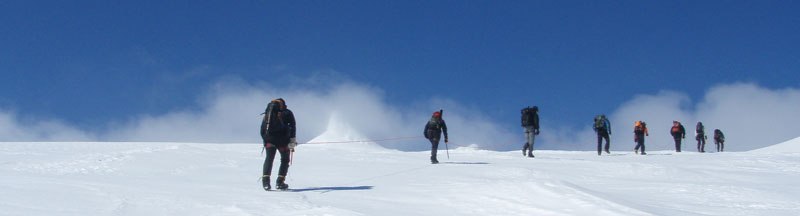 Jöklamenn héldu hópinn alla leið þrátt fyrir að við værum komin í línur og var það nýtt fyrirkomulag fyrir okkur sem hingað til höfum kynnst því að hver lína fari á sínum hraða og menn sjáist varla nema á tindinum og í lokin. Nú var hópurinn þéttur reglulega og stemmning Toppfara hélst alla leið sem var frábært því það getur verið örlagaríkt í hvaða línu þú lendir út frá úthaldi og gönguhraða félaganna og það ríkir engin samheldni innan hópsins í heild þegar línurnar eru að koma upp á mismunandi tímum, svo við vorum afskaplega ánægð með fyrirkomulag jöklamanna.