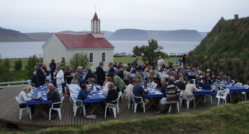 Við sátum við spjall, hlátur, söng, sögur og dans fram á nótt... þar til reykurinn í útiofninum rak menn á fætur...