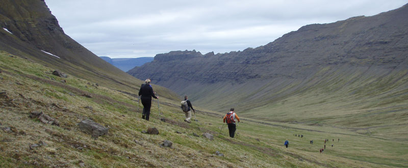 Við tók ganga meðfram Veturlandafjalli að síðasta kafla leiðarinnar... Hillu, Sléttubjörgum og Skútubjörgum inn að Stapadal...