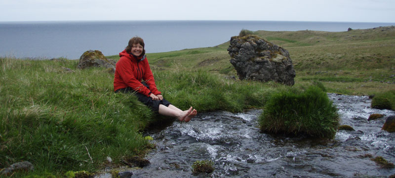 Hamraveggirnir blautir á köflum og vatnið drjúpandi niður með veggjunum... Hellar og holur... mýrarslý og mosi... þari og grjót...
