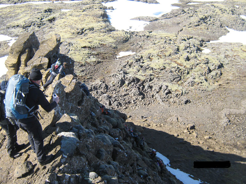 ...og við klöngruðumst áfram í eftirskjálftunum eftir móbergsvegginn...
