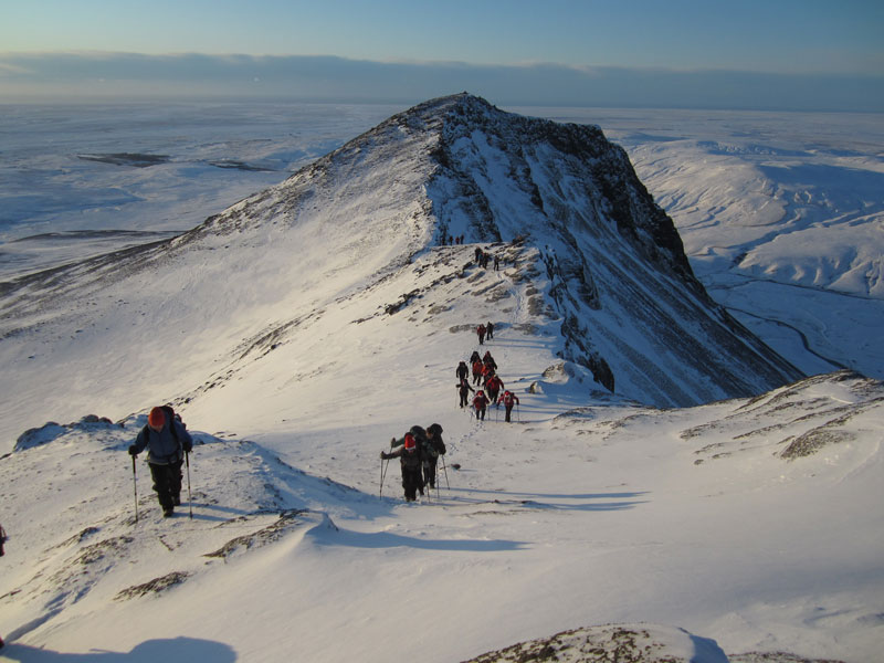 Hryggurinn sem við klöngruðumst um sumarið í fyrra var ekki æskilegur klöngurstaður fyrir 38 manns í vetrarhörkumen nokkrir fóru hann engu að síður...