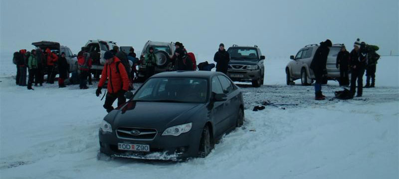 Helzta verkefni göngudagsinss... eftir að menn höfðu komið akandi frá Reykjavík og Húsafelli og sameinast við veitingastaðinn Baulu um morguninn... var að finna góðan stað fyrir nokkra bíla til að leggja við þjóðveg eitt á Holtavörðuheiði um hávetur... það gekk framar vonum en Ísleifur sá um að krydda þetta aðeins með því að festa sinn fjallabíl í snjónum... svo fyrstu menn til baka eftir göngu höfðu verkefni til að leysa meðan síðustu menn tíndust inn ;-)
