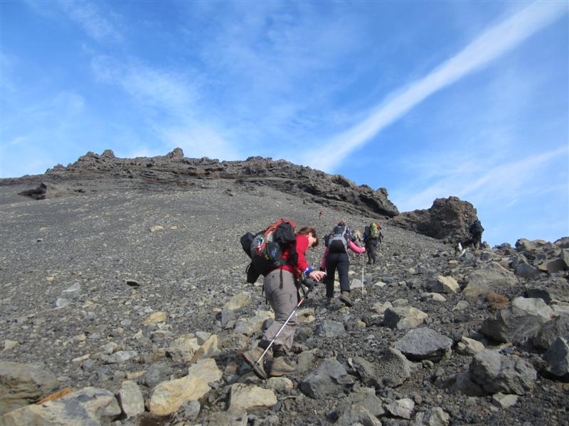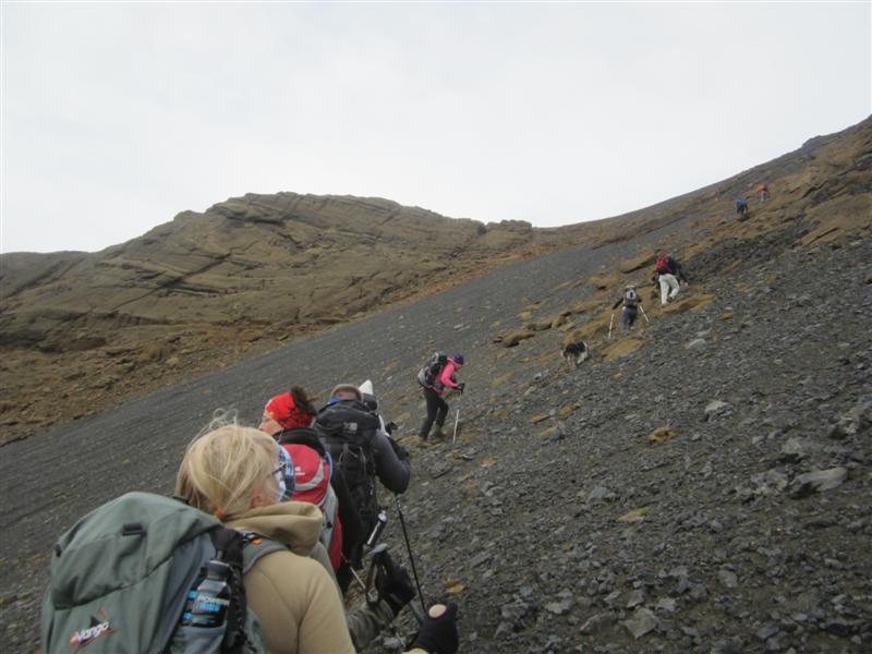 Við héldum inn grýttan sanddalinn og tókum svo að hækka okkur upp fjallsrætur Innsu Jarlhettu þar sem brattinn er minnstur...