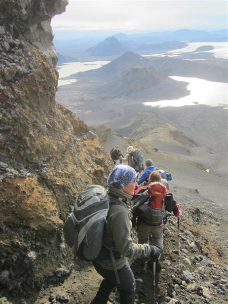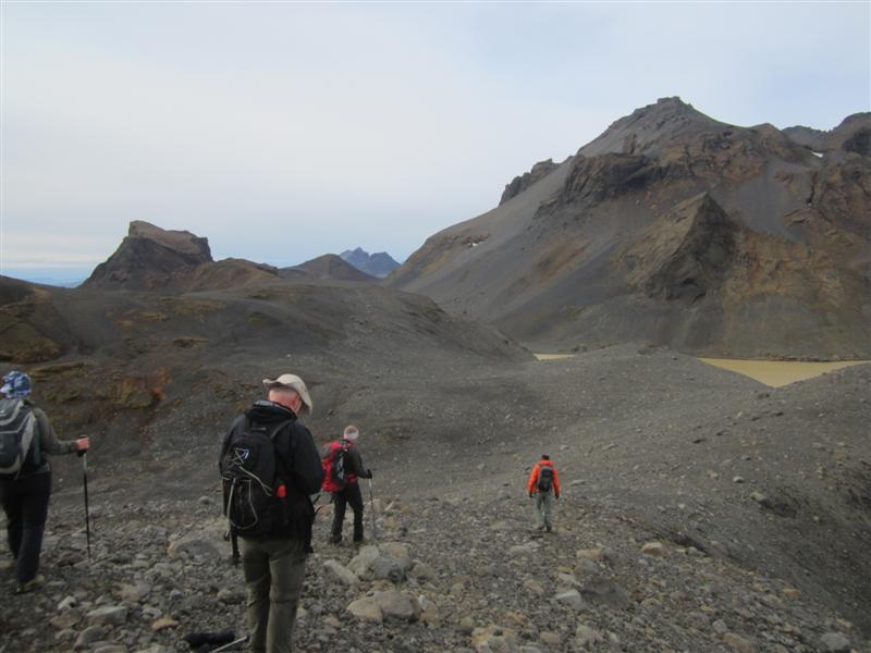 Rauða Jarlhetta í baksýn - Nyrsta Jarlhetta á hægri hönd göngumanna og Innsta Jarlhetta á vinstri hönd...