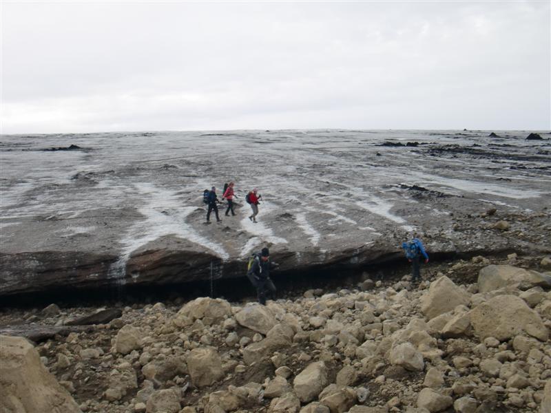 Leðja þarna þar sem jökull og grjót mættust en Kári kom mönnum á þurrt land... þ.e.a.s. grjót...