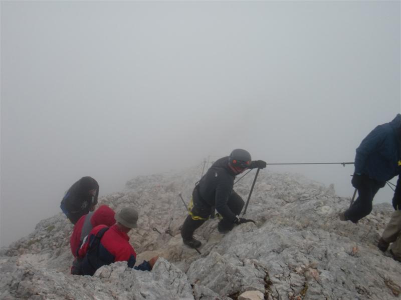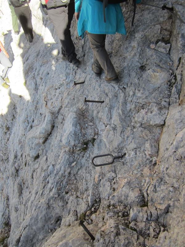 Þegar við vorum Komin upp úr geilinni tóku við vírar sem einkenndu það sem eftir leið ferðar... stálvírar festir á járnstangir í bergið á berskjölduðustu stöðunum alla leið á tind... þar sem stundum var ekkert beggja vegna nema hengiflugið...