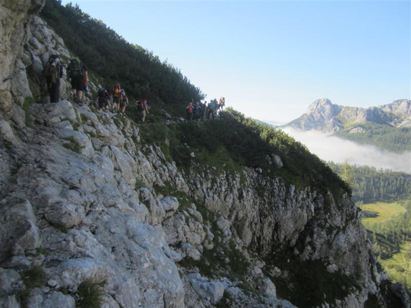 Þeir sem ætluðu upp á Triglav síðar um daginn, yrðu að sýna öryggi á þessari leið...