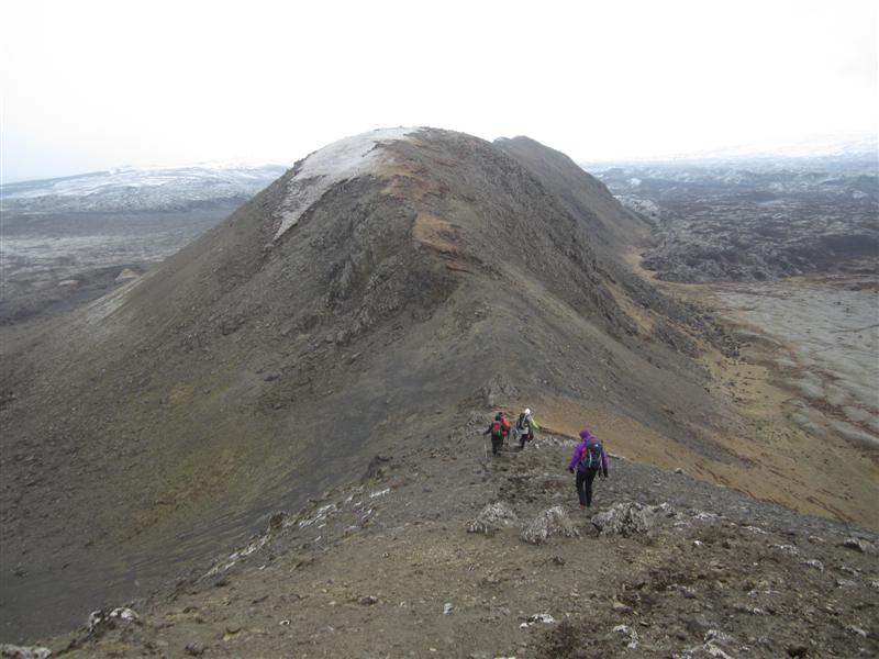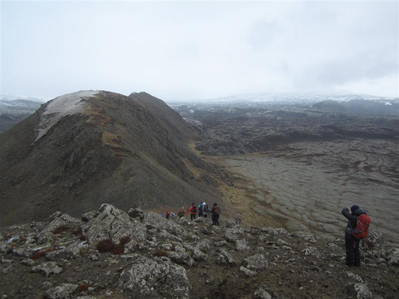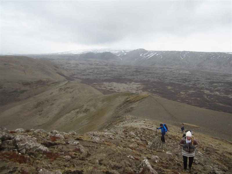Gönguleiðin yfir eldra hraunið meðfram hraunbrúninni síðar um daginn að Gráfelli sem er hægra megin á mynd...