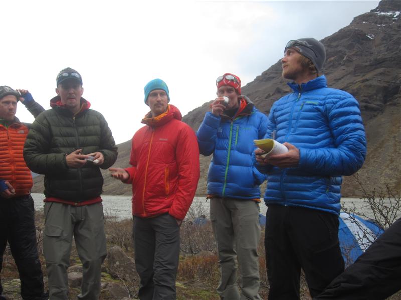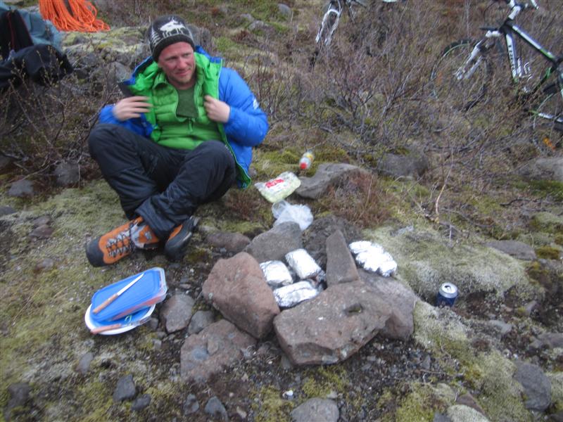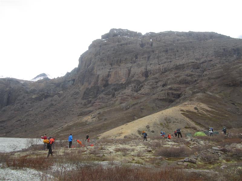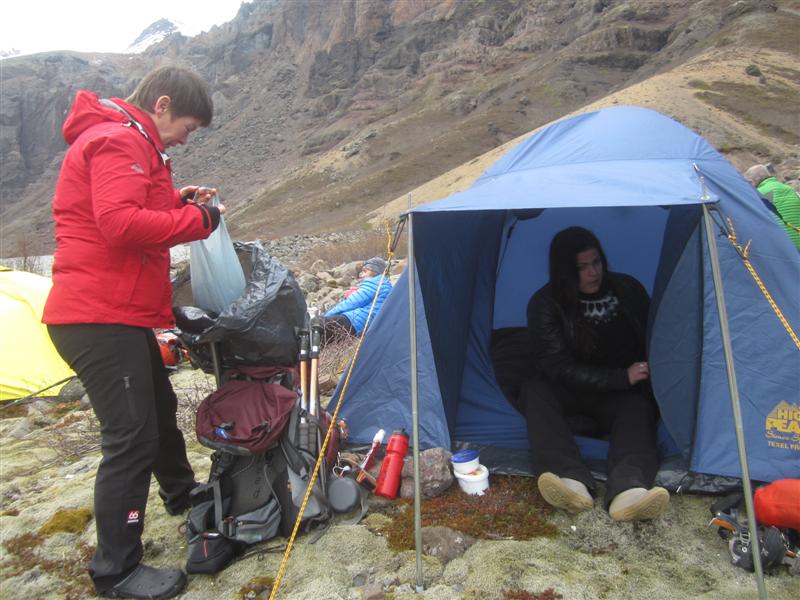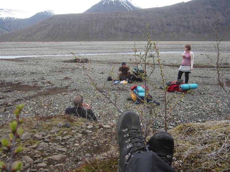 Smá hvíld og vatnssopi... jú, tökum hópmynd hérna í þessu góða, bjarta veðri með fjallasýnina... aldrei að vita hvernig þetta veður myndi leika okkur... þetta var of gott til að vera satt.. - sjá hópmyndina efst í ferðasögunni.