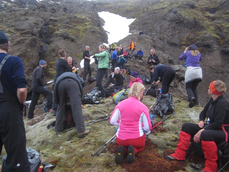 Áning við innri brúnna... og menn fengu sér sopa af jökulánni...