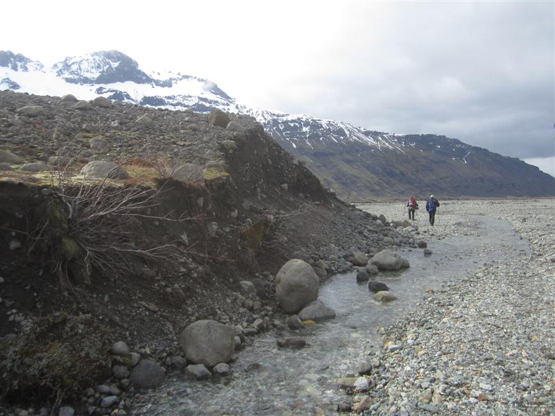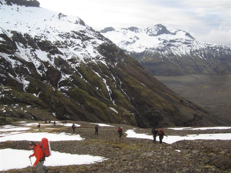 Gengið var frá vestari enda á tjaldstæðinu við Skaftafell í 108 m hæð...