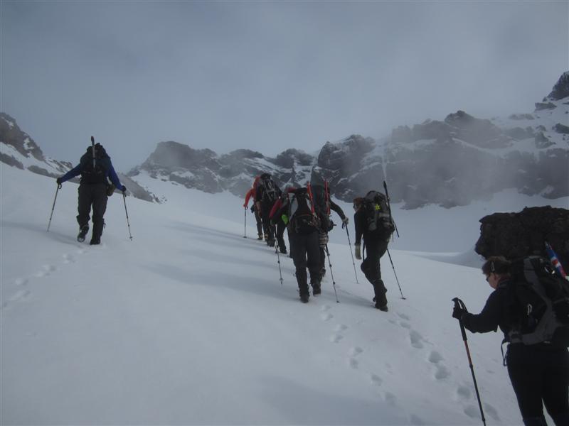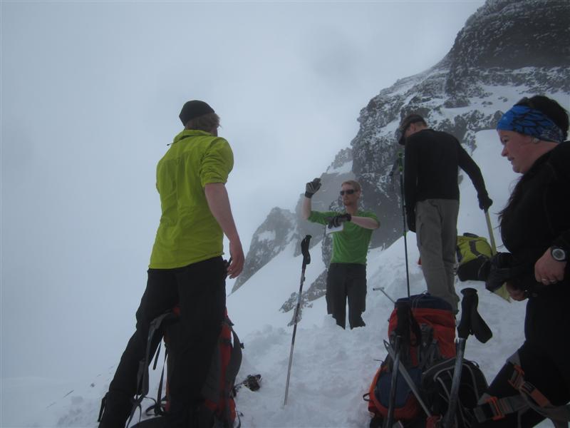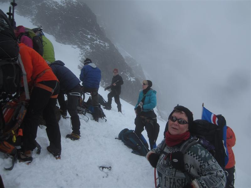 Við vorum í banastuði í þessu veðri og til í að takast á við krefjandi verkefni helgarinnar sem búið var að undirbúa vikum saman með búnaðarpælingum, bakbokaburði og endalausum matarvangaveltum ;-) Lilja Sesselja, Bestla, Irma, Droplaug, Gylfi, Sigga Sig., Björn H. í hvarfi og Ástríður.