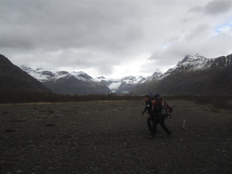 Fjöllin tignarleg innar í dalnum og jökullinn fallandi fyrir framan okkur...