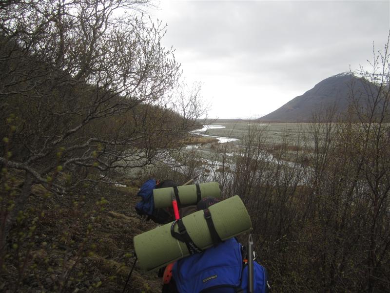 Síðasti kaflinn inn að tjaldstæði... við sáum nokkur góð tjaldstæði á leiðinni sem söguritari hér myndi mæla með að tjalda frekar en að fara alla leið að Meingili, vatn fellur úr hlíðunum vestan megin og vel hægt að finna mun betri náttstað en í hallanu og grýtinu í Meingili... þó það hafi verið óskaplega skemmtilegur tjaldstaður svona eftir á ;-)