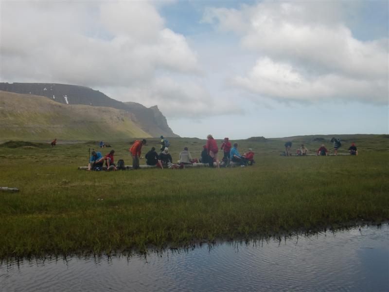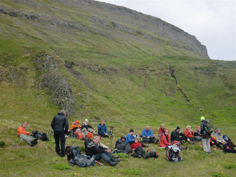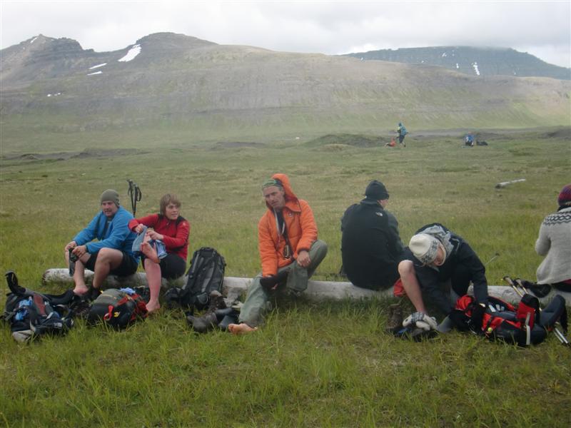 ... og gleðin var enn við völd þarna snemma morguns... eftir sögulegan morgunmat... mjög lítinn nætursvefn... krefjandi göngudag deginum á undan... litlum svefni deginum þar á undan... krefjandi göngudegi þar áður... litlum nætursvefni nóttina á undan honum... eftir miðnæturgöngu eftir erfiða sjóferð eftir langan akstur frá Reykjavík þriðjudaginn 2. júlí... það var með ólíkindum hvað þessi ferð var þétt og krefjandi... en um leið gefandi og botnlaus í mergjuðum minningum af stórfenglegu landi með stórkostlegum göngufélögum...