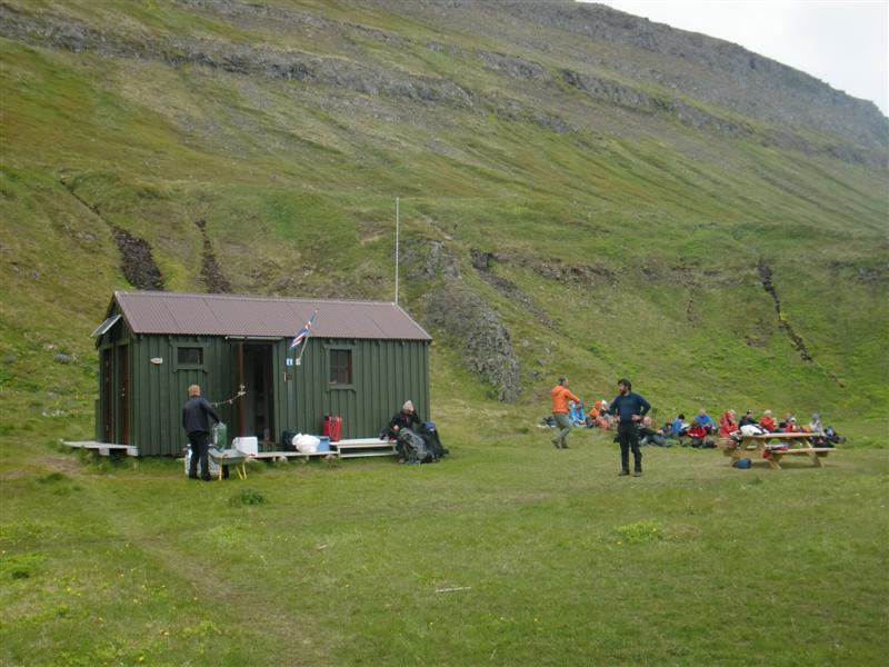 Allir komnir með rúmstæði og þá hófst fyrirlestur skálavarða þar sem strangar reglur gilda með rafmagnsnotkun, frágang á rusli, umgengni við rebba og umgengni almennt sem nauðsynlegt var að allir heyrðu... - mynd af skálavörðunum saman hér - getur einhver lánað mér slíka mynd? - Gummi og Inga skálaverðir voru yndislegt, vinalegt, notalegt og hjálplegt fólk sem bættu enn í góða flóru fólks sem Toppfarar hafa kynnst á ferðum sínum um Ísland og erlendis...