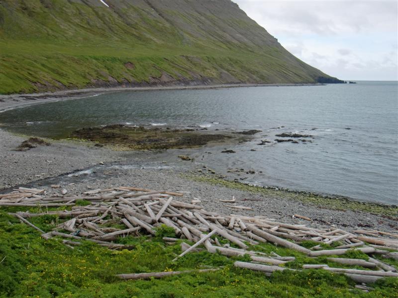 Farangurinn sem var skilinn eftir í fjörunni í Hornvík... og sóttur af drengjunum daginn eftir og fluttur í Hornbjargsvita...