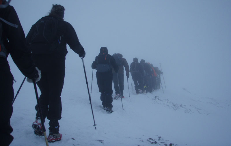 Veðurspá var ekki mjög hagstæð og í samræmi við rysjótt veðrið sem ríkt hefur samfellt alla síðustu viku og spáð í þeirri næstu á Íslandi... en þetta leit vel út á staðnum og var lygnt og milt mestan part göngunnar en hörkubylur efst og ekkert skyggni.