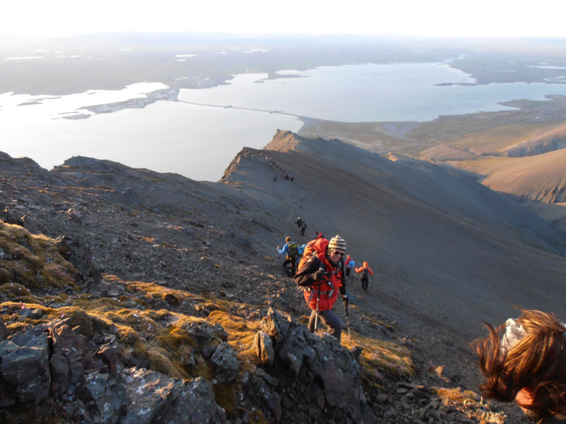 Gengið var upp norðaustan megin og fellið þrætt til suðurs með