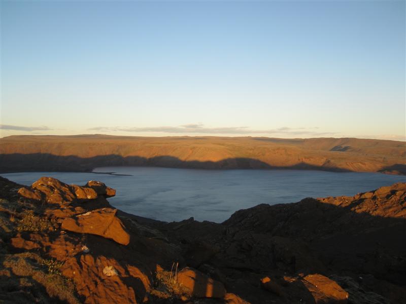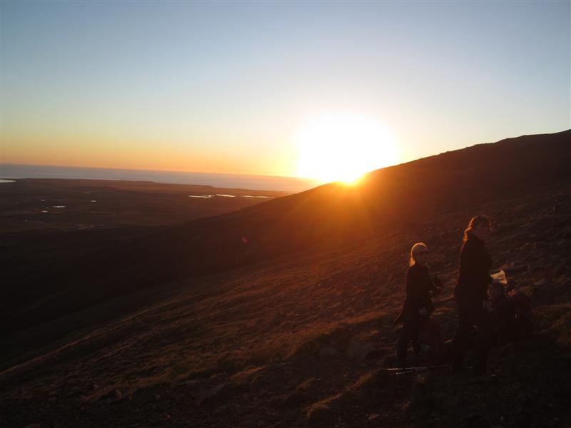 Sólin sest og farið að skyggja efst uppi á gostappanum... en hæsti tindur Snóksfjalls aðeins innar og lengra inni á fjalli... við slepptum honum auðvitað ekki... enda var þetta varla tíu mínútna viðbótargangur aðra leið ;-)