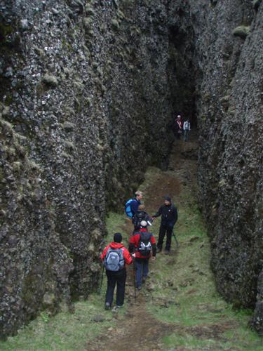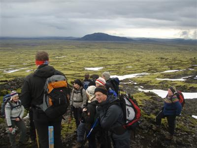 Hjölli, Lilja, Sirrý, Björgvin, Þorbjörg, María, Örn, Ragna, Anna Margrét, Guðjón Pétur, Stefán A., Halldóra Á., Skúli, Björn og Bára. Gengið var upp milli Meitla og upp með Stóra Meitli og genginn gígbarmurinn allan hringinn þrátt fyrir að hífandi rok væri þarna uppi enda kusu þrjár að fara hina leiðina um barminn og mæta hópnum en þetta reyndist auðveldar en áhorfðist og lygnara niður með gígbarminum en uppi á tindinum.